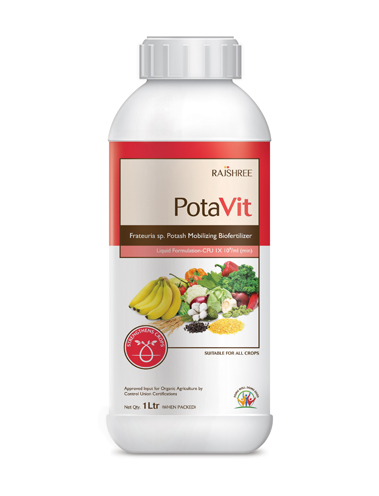 POTAVIT contains Frateuria sp., which has the ability to mobilize the elementary potassium or a potassium mixture which can be easily absorbed by plants. The mobilizing power is so high that it can eliminate the use of chemical potassium fertilizer by up to 25-30%. This product is suitable for all crops.